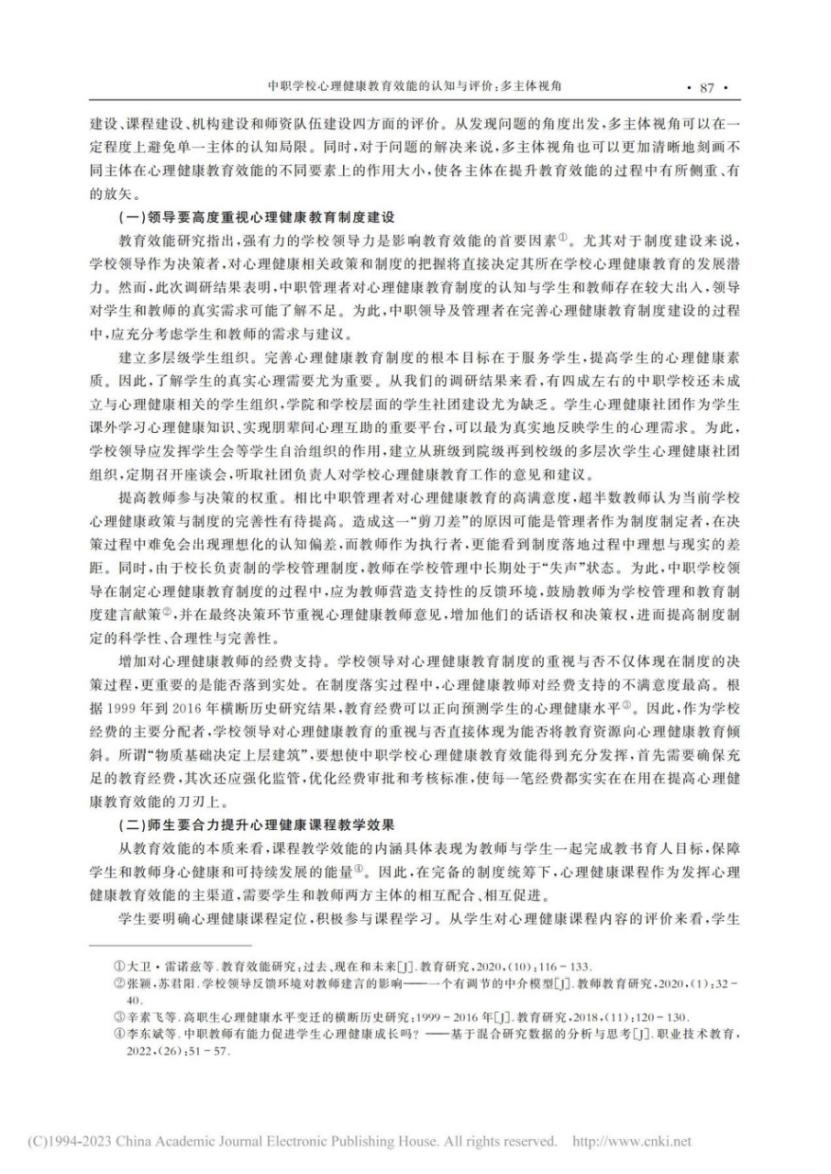 [关键词]中职学校;心理健康教育效能;学生;教师;管理者